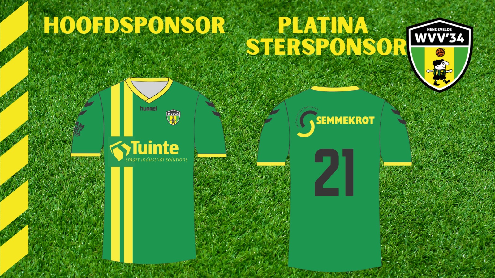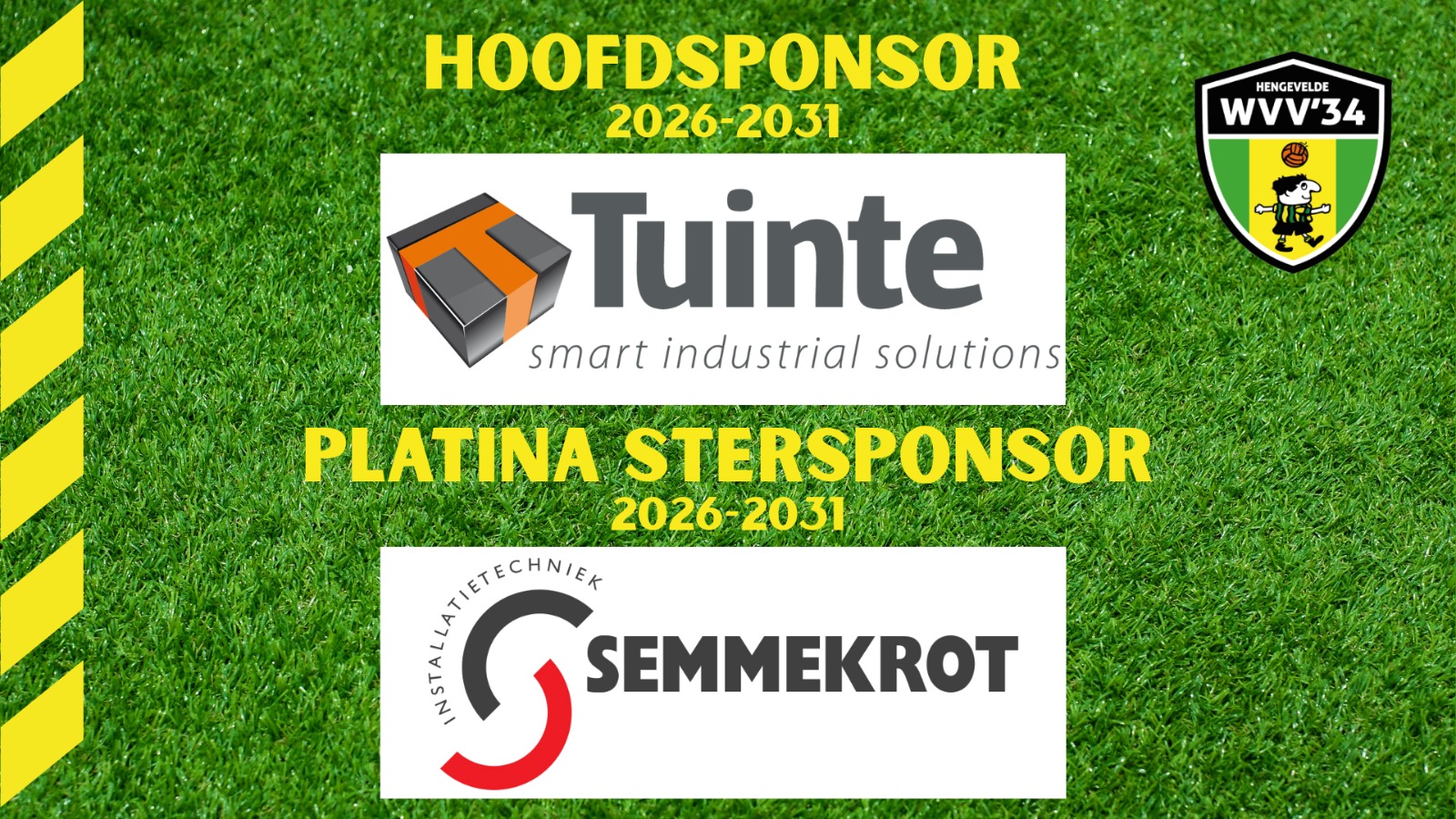WVV'34 is verheugd om te kunnen melden dat met ingang van het nieuwe seizoen Tuinte de nieuwe hoofdsponsor zal worden van WVV'34, met Installatietechniek Semmekrot als Platina Stersponsor aan hun zijde. De Platina Stersponsor is een nieuwe laag in de sponsorstructuur binnen WVV'34 die tussen de Hoofdsponsor en Gouden Stersponsoren in zit. Na goede gesprekken te hebben gevoerd zijn wij blij dat het gelukt is om met deze Hengeveldse bedrijven deze posities in te vullen. Beide bedrijven waren de afgelopen jaren al betrokken als Gouden Stersponsor en groeien nu door tot Hoofdsponsor én Platina Stersponsor. Ook zijn wij dankbaar voor de uitgesproken steun van alle andere sponsoren aan WVV'34. Zonder jullie steun staat onze vereniging niet waar het nu staat en daar zijn wij ontzettend trots op. Er komen uitdagende jaren aan voor WVV'34 en Hengevelde in het algemeen, dus we zijn blij dat wij op jullie steun kunnen rekenen!